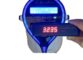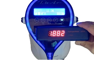 写真は、当社にあるリタエアーを2〜3週間使用せず放置していたものを、水素測定器で測定した結果です。